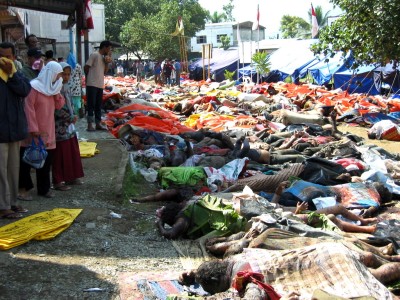 ◆被災から3日目(2004年12月28日)。バンダアチェ市内の遺体仮安置場の一つ。